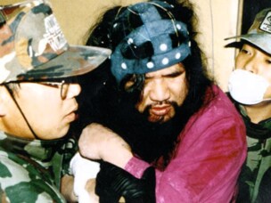 隠し部屋を暴かれ、逮捕された直後の麻原。