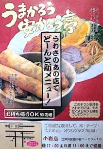 「うまかろう安かろう亭」の看板メニュー、「本家ハルマゲ丼」(=春巻丼)と「でっちあげ定食」(=ハンバ